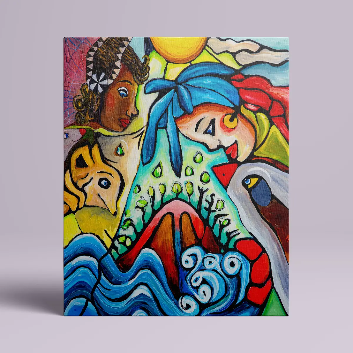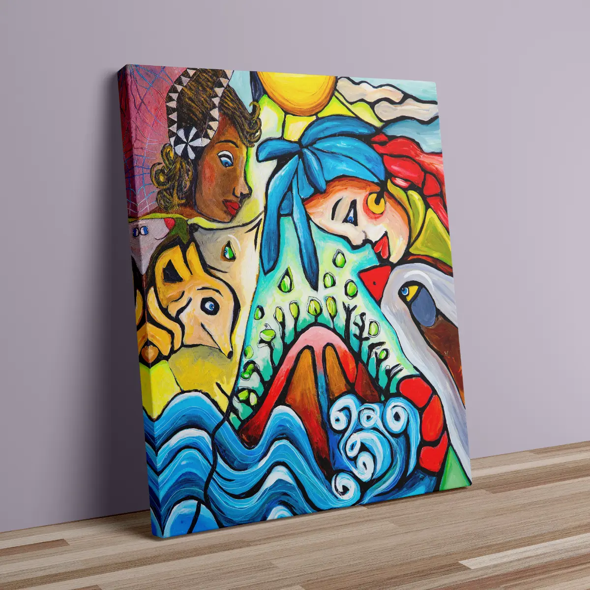 Beautiful Life canvas print with colorful figures and nature. Vibrant wall art print on canvas full of harmony, emotion, and modern expression.